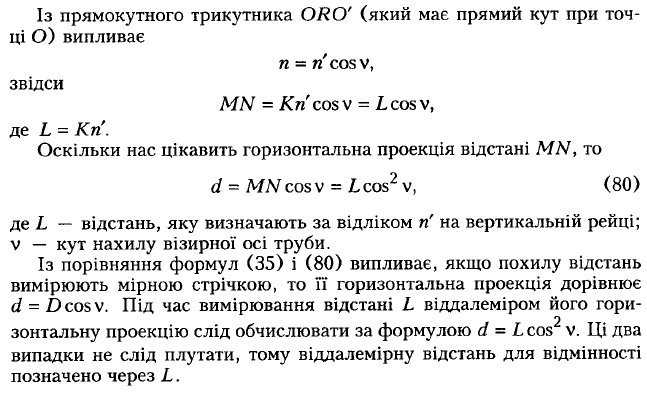 Визначення горизонтальних проекцій похилих відстаней, виміряних віддалеміром.