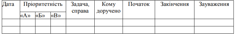 2) систематизація усіх завдань за критерієм важливості і визначення черги їх виконання, враховуючи, що терміновість не має нічого спільного з важливістю відповідного завдання;