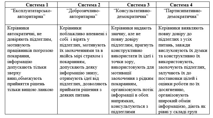На думку Лайкерта, саме 4 система виявляється найдієвішою. Спілкування нетрадиційне, стосунки дружні, панує атмосфера довіри, превалює орієнтація на людину.
