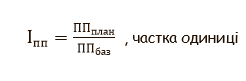 1. Індекс зростання продуктивності праці (Іпп) визначається як відношення значення продуктивності праці планового періоду (ППплан) до значення продуктивності праці базового періоду (ППбаз) за формулою: