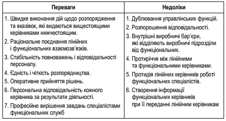 Таблиця 5 – Переваги та недоліки лінійно-функціональних організаційних структур управління