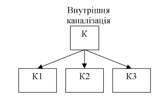 Рисунок 1 - Класифікація внутрішньої каналізації: К1 - побутова каналізація («господарсько-фекальна каналізація»); К2 - дощова каналізація («атмосферна»); К3 - виробнича каналізація