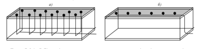а – з підпільним трубопроводом: б – з підвісним трубопроводом