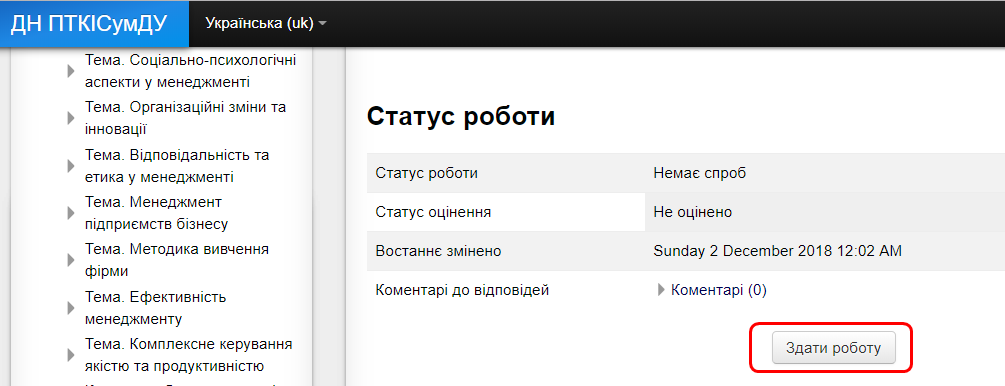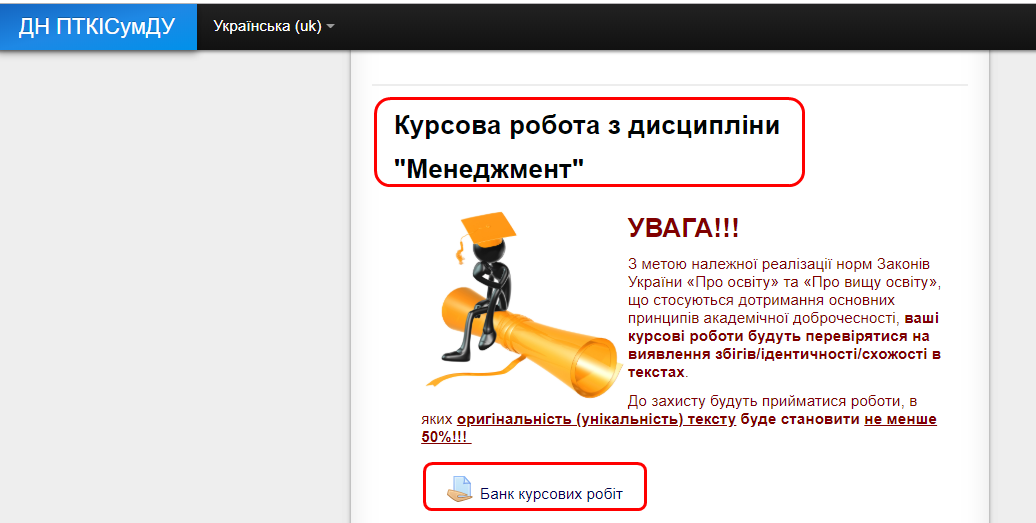 Крок 8. Переходимо до дистанційного курсу "Менеджмент_641" > Курсова робота з дисципліни "Менеджмент" > Блок "Банк курсових робіт"