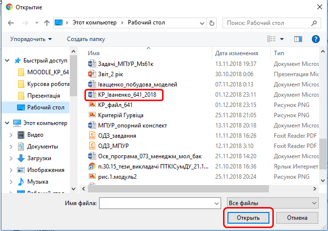 Назва файлу "КР_Прізвище_641_2018" (КР_Прізвище_група_рік).