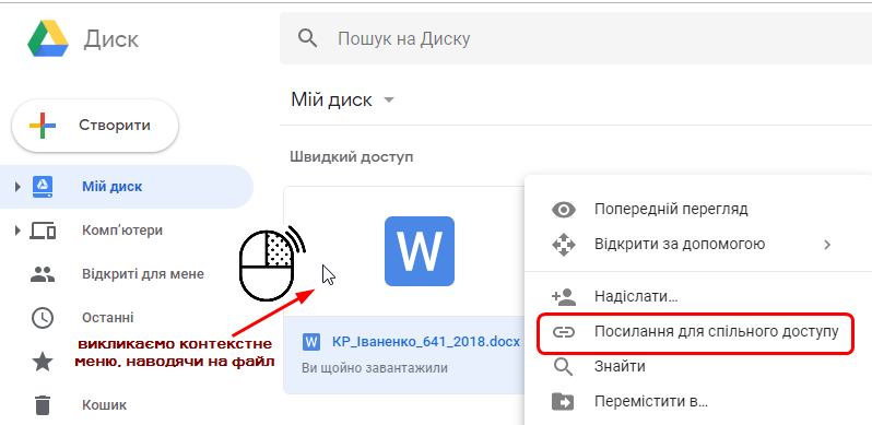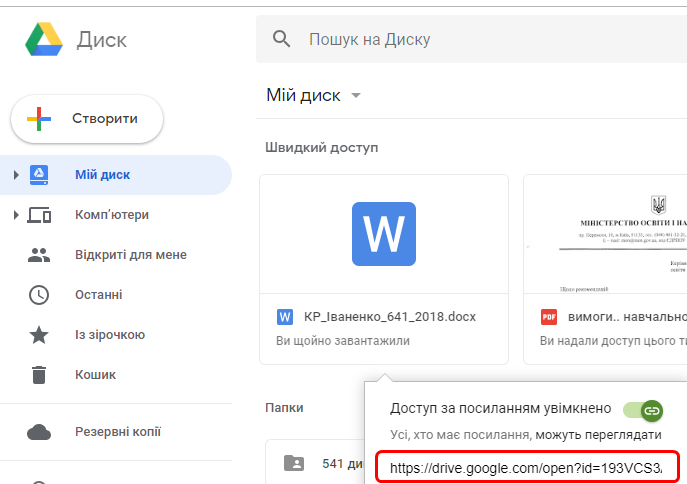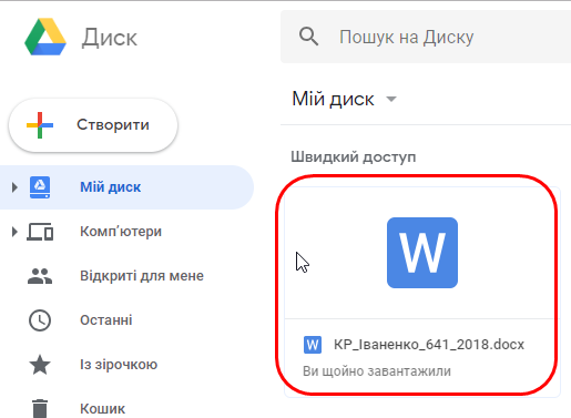 Крок 4. Завантажуємо файл остаточного варіанта курсової роботи на Google Диск