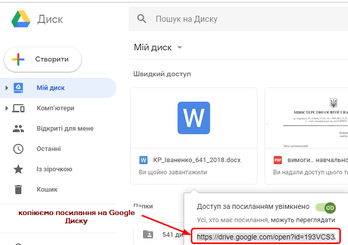 Крок 10. На Google Диску копіюємо Веб-посилання на файл остаточного варіанта курсової роботи